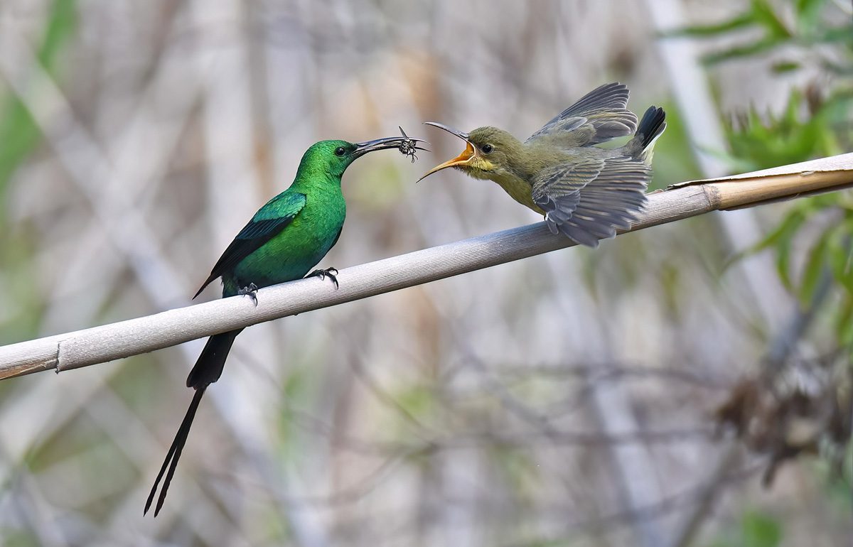 The Macaulay Library holds the world’s biggest repository of bird photos, helping both scientists and birders better understand the breeding behaviors of birds, like how parents care for their young. South African birder Regard Van Dyk made such a discovery when he happened on an adult male Malachite Sunbird “foraging very acrobatically for anything it could catch.” Upon investigation, Van Dyk said he discovered a tiny juvenile sunbird perched in the reeds. “It all made sense,” he said. “The adult was … visiting every couple of seconds, feeding it, and flying off again to catch more food.”