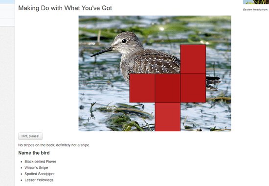 - NEW: a self-paced series of Be a Better Birder tutorials aimed at beginning birders who want solid instruction in the basics of bird identification. The tutorials build on the concepts introduced in the Inside Birding and Building Skills sections of All About Birds. They feature interactive components to help you practice your skills, rather than just telling you how. You can go through them as many times as you like for 6 months after you sign up.