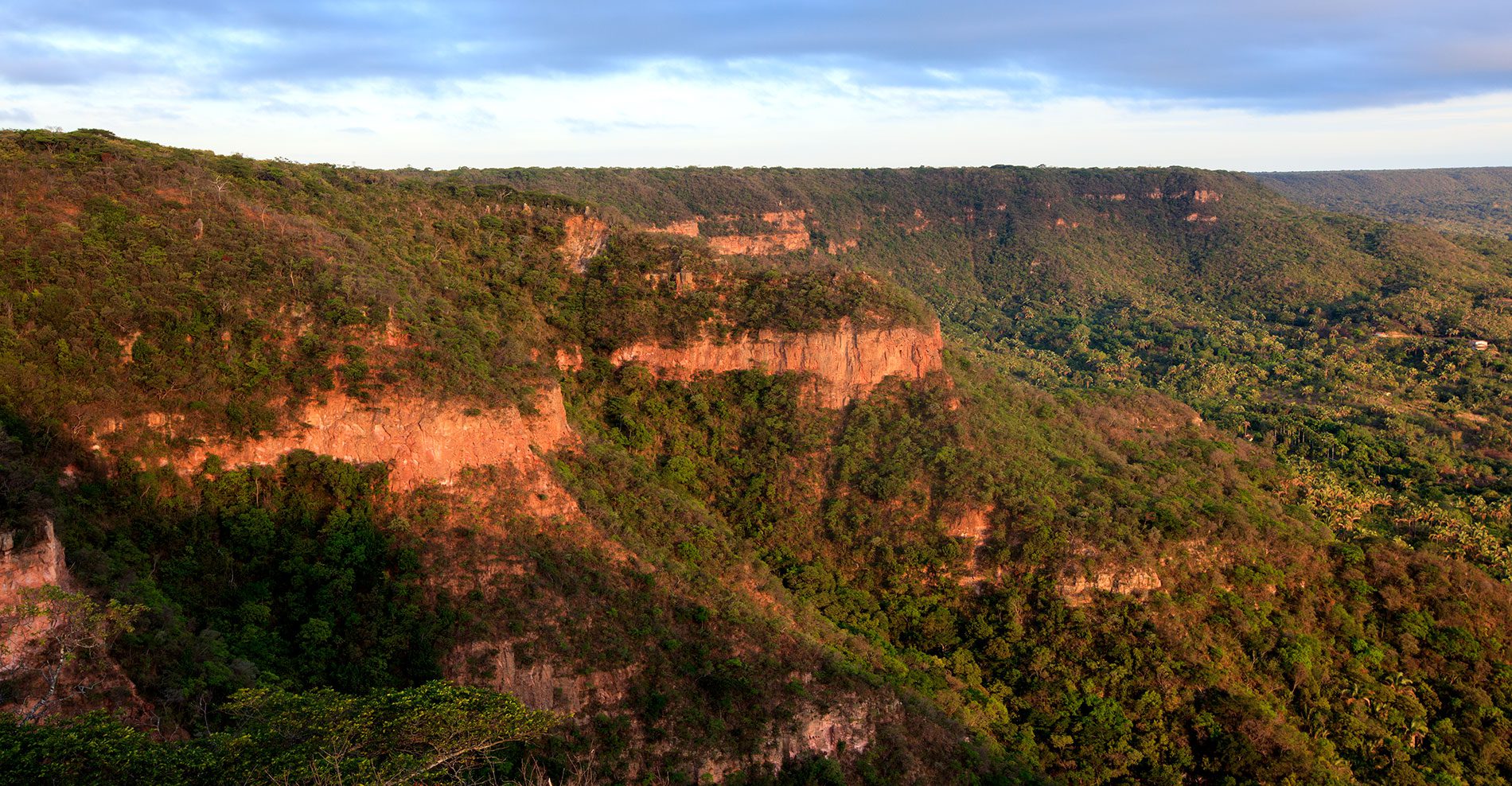 And yet, this wet-forest manakin lives in the caatinga biome, a semiarid region about 7 degrees south of the equator. To be precise, the Araripe Manakin lives in a moist-forest oasis in the middle of a scrub-brush landscape, a topographical peculiarity that’s like a Hawaiian cloud forest dropped into the sagebrush country of Utah. The moisture comes courtesy of the chapada, an old Portuguese word for plateau. The tabletop of the chapada acts like a 4,000-square-mile rainwater catch basin. Whenever rain hits the ground on the plateau, it slowly percolates into the soil and collects into underground pools. The water then migrates sideways, reemerging as hundreds of natural springs on the plateau’s side to feed a humid forest habitat. It may take thousands of years for raindrops to funnel from the chapada’s dusty, scrub-brush top to the slopeside gushing founts amid gallery forests.