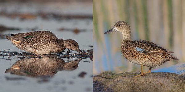 It always pays to consider the most common species in a group. Mallards are everywhere, but the females are fairly easy to confirm with their orange-and-black bills and their blue wing patch (speculum) bordered in white.