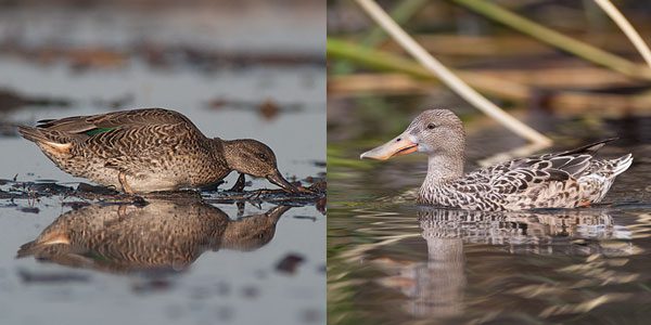 Now that we know this is a dabbling duck, we can narrow the species list. One species can be quickly ruled out based on Size & Shape: the Northern Shoveler’s enormous bill jumps out as distinctive no matter how confusingly brown the rest of the bird is.